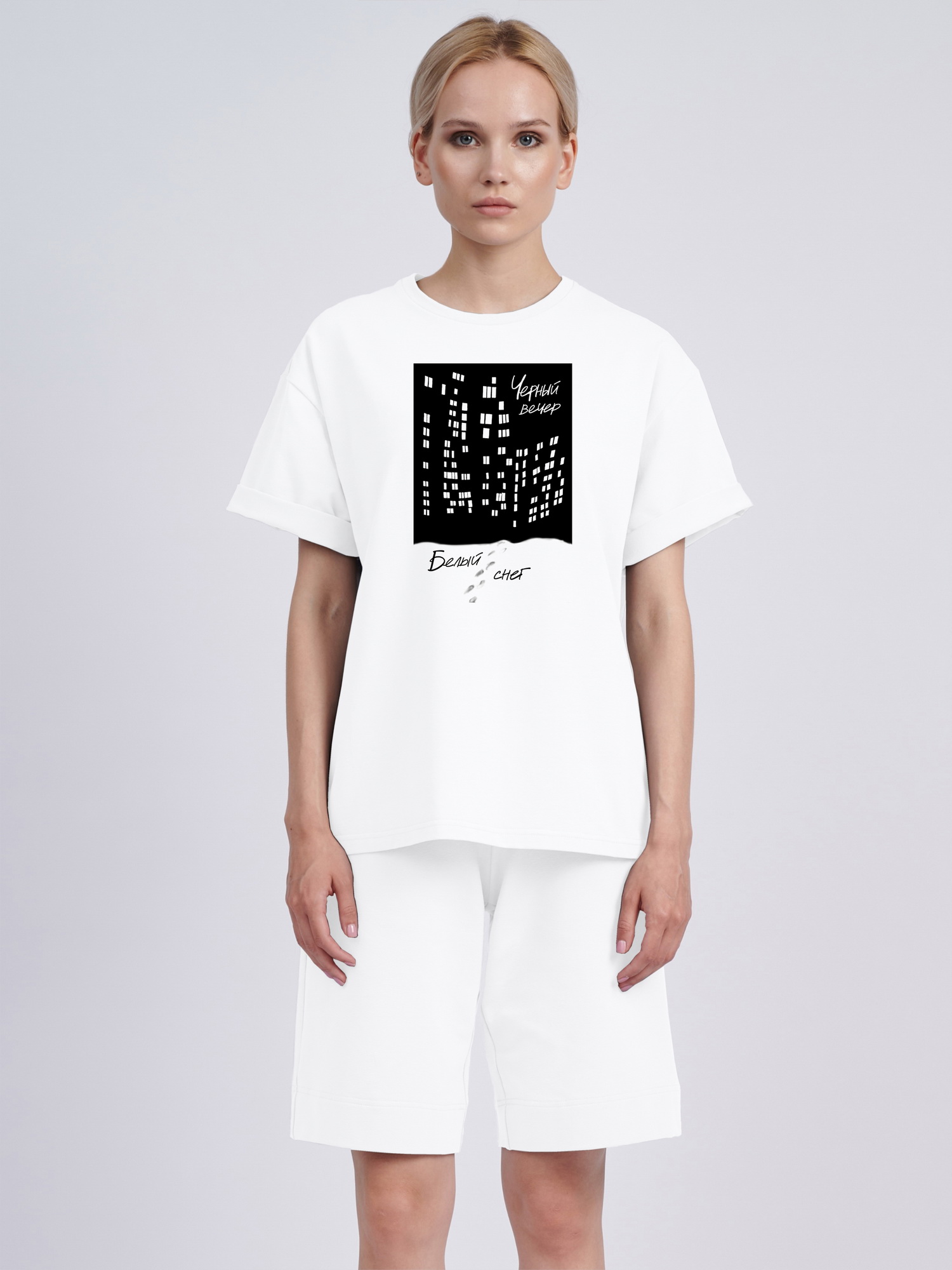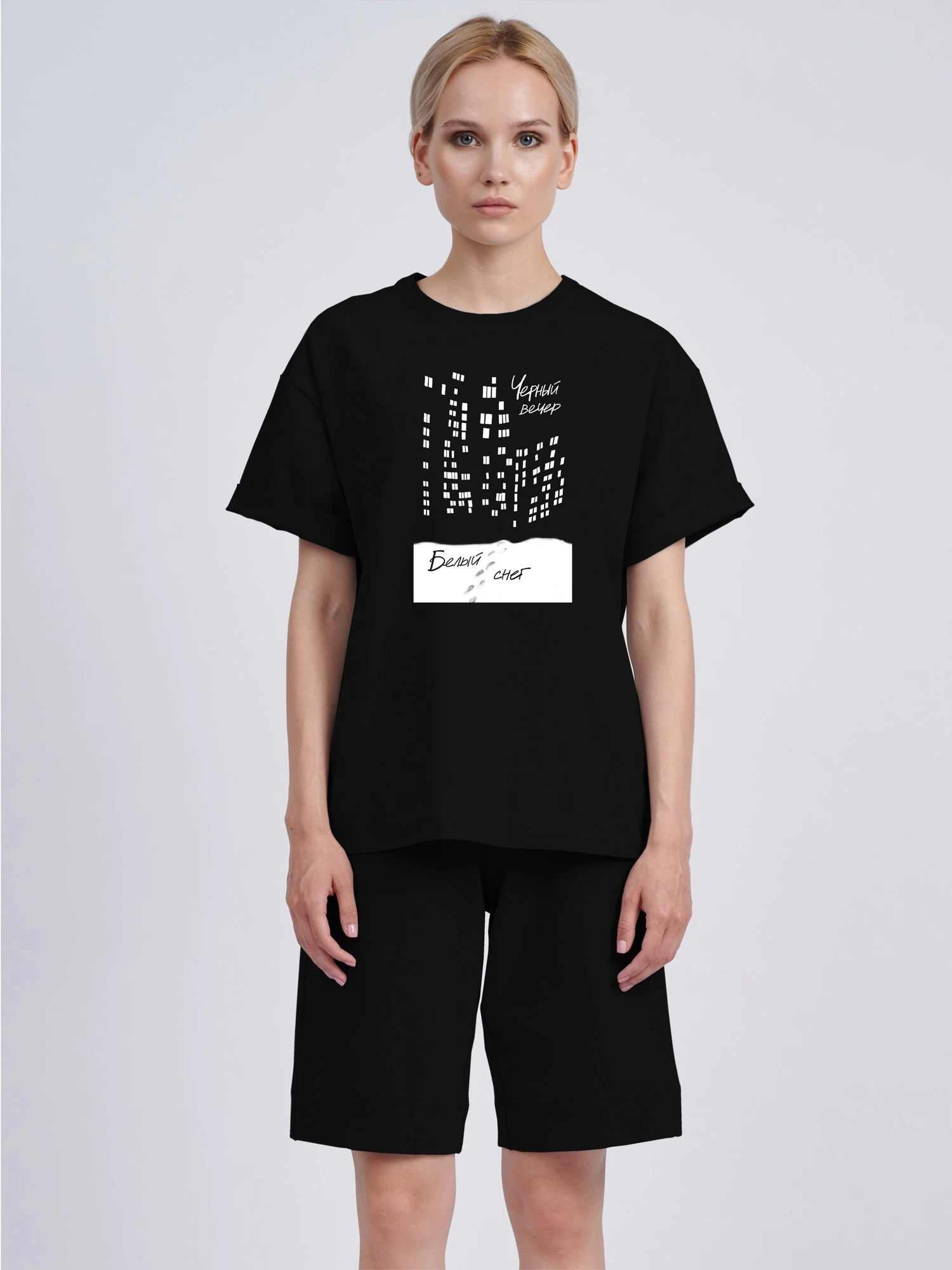 Футболка оверсайз "Чёрный вечер. Белый снег"