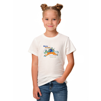 Футболка детская унисекс из 100% хлопка, прямого кроя и круглым воротом. За счет свободного кроя не сковывает движений и прекрасно подходит для каждодневной носки и занятий спортом. Натуральный хлопок не раздражает детскую кожу. Также футболка гипоаллергенна, так как сделана из натурального хлопка. Подойдет для девочек и мальчиков, для школы, детского сада и дома. Изделие выполнено из 100% хлопка плотностью 180 гр/м2. Наши футболки дарят тепло, радость и хорошее настроение.